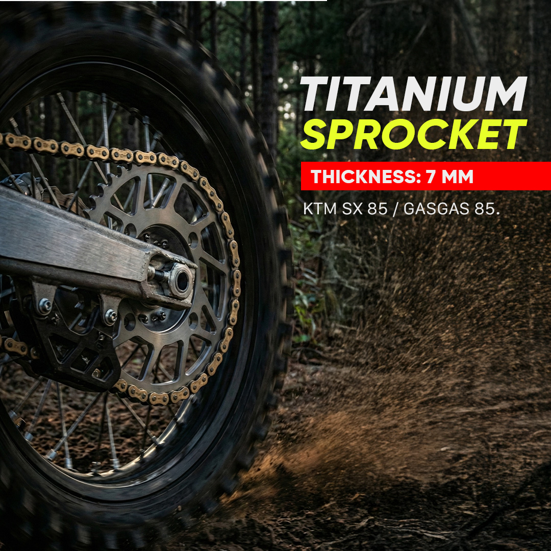 | Product Overview | Built for professional racers and high-performance 85cc competition machines, this titanium sprocket delivers unmatched strength-to-weight advantage. The ultra-light titanium alloy construction reduces rotating mass dramatically, giving you explosive acceleration, sharper throttle response and improved handling control throughout the entire rev range.